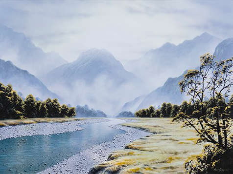 For Blair Greig his paintings are all about light and mood. “What I feel is as important as what I see and my paintings are more than a recreation of a particular view. I try to imbue them with the emotions I feel outdoors” He has exhibited in London, the United States of America and New Zealand. “I suppose I would be considered a realist painter but what I am trying to capture is the effects of light and mood. I prefer to paint the South Island as I feel I have an affinity with the place.”