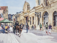 Hanrahan demonstrates masterful handling of the water colour medium achieved with a spontaneity and rapidity of execution. The light being captured in the unbrushed areas of his work with...